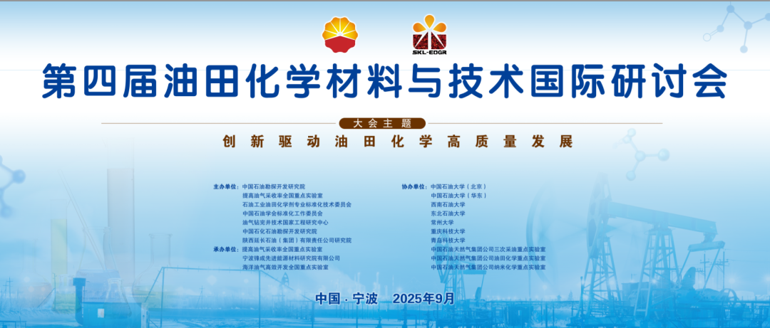 9月25日至26日,由提高油气采收率全国重点实验室、中国石油勘探开发研究院联合石油工业油田化学剂专业标准化技术委员会、中国石油学会标准化工作委员会、油气钻完井技术国家工程研究中心、中国石化石油勘探开发研究院、陕西延长石油(集团)有限责任公司研究院共同主办;由提高油气采收率全国重点实验室、海洋油气高效开发全国重点实验室、宁波锋成先进能源材料研究院有限公司承办;中国石油大学(北京)、中国石油大学(华东)、西南石油大学、东北石油大学、常州大学、重庆科技大学、青岛科技大学、中国石油天然气集团公司三次采油重点实验室、中国石油天然气集团公司油田化学重点实验室协办的第四届油田化学材料与技术国际研讨会在奉化盛大召开,参加本次研讨会的代表达300余人。